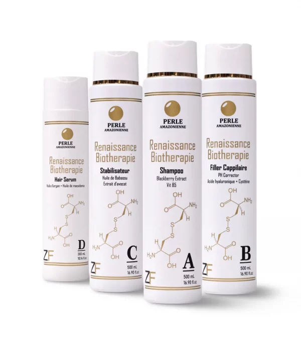 La gamme renaissance biothérapie et le traitement à froid idéal pour les cheveux fragilisé par la décoloration élastique et sec. Il répare en profondeur grâce à sa formule riche en acide hyaluronique et cystéine régule le pH est offre une hydratation profonde.